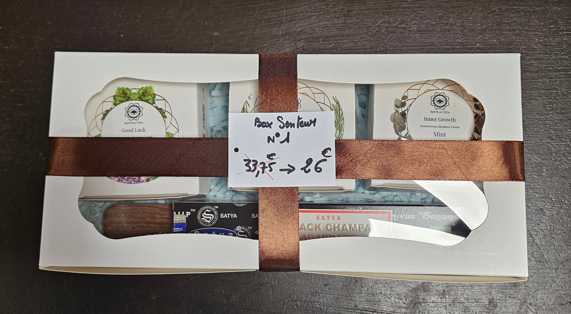 La Box Senteur n°1 est une invitation à l’éveil des sens et à la détente. Elle réunit parfums envoûtants, pierres naturelles et rituels parfumés pour créer une atmosphère douce et harmonieuse.