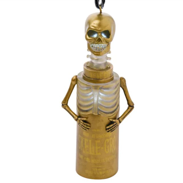 Son squelette doré et sa bouteille surmontée d’un crâne rappellent le célèbre Poussos, la potion qui fait repousser les os dans la saga.
